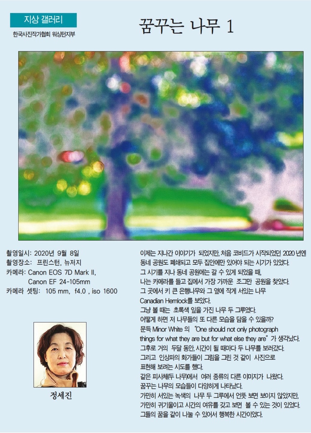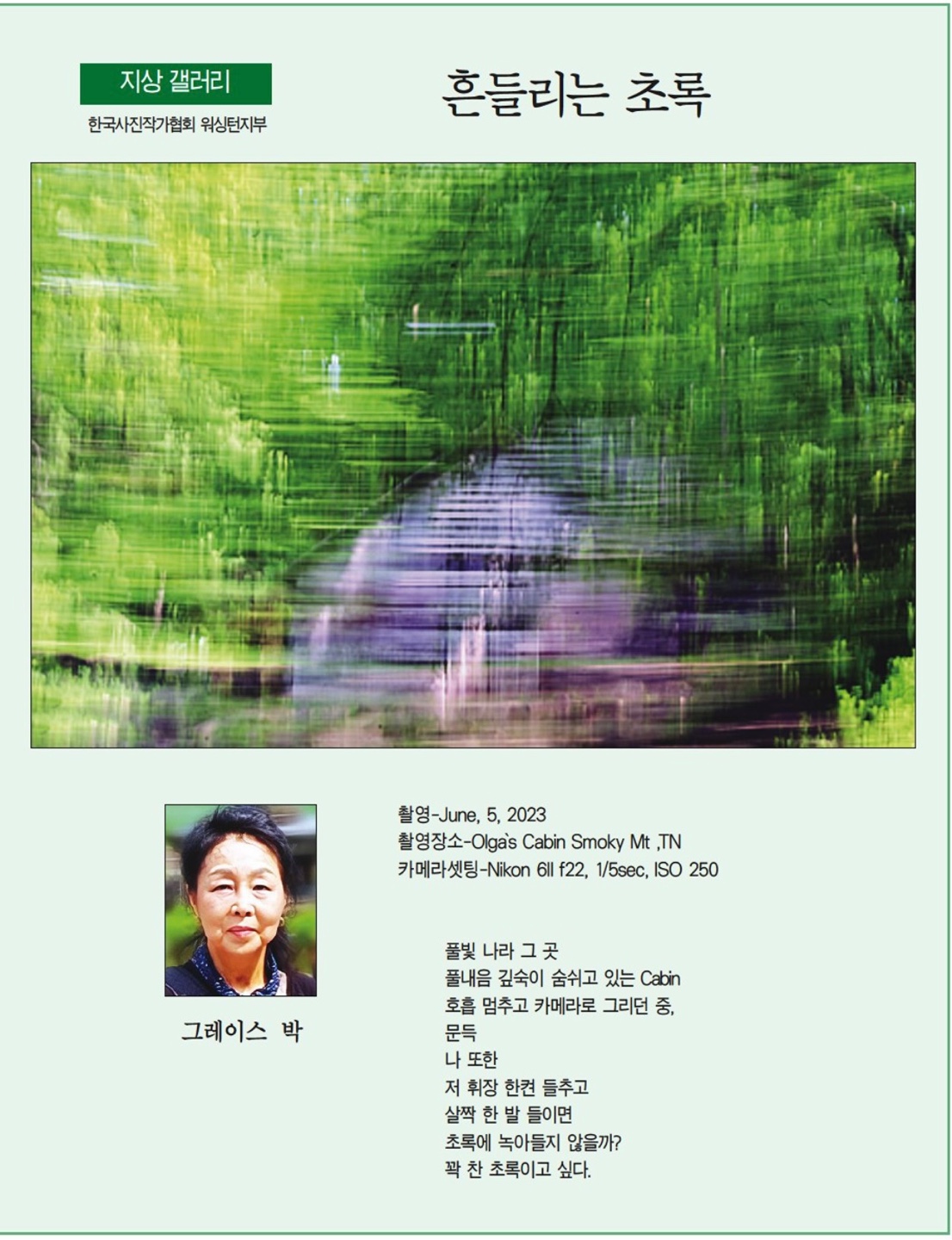 | 9 | 흔들리는 초록. Grace 박. 9월 21일 2023년 .한국일보 | 9/23/2023 |