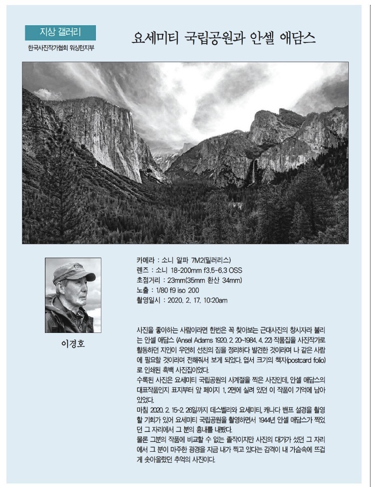 | 4 | 요세미티 국립공원과 Ansel Adams. 이경호. 10.26. 2023 | 10/29/2023 |