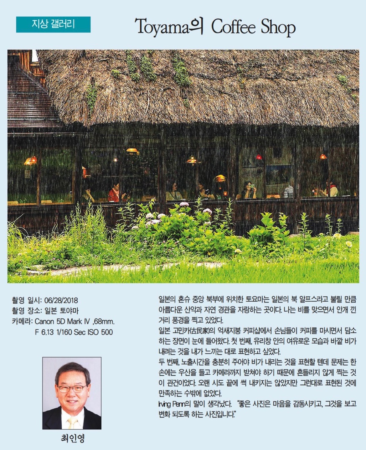 | 8 | Toyama의 Coffee Shop. 최인영. 6월 8일 2023년. 한국일보 | 9/23/2023 |