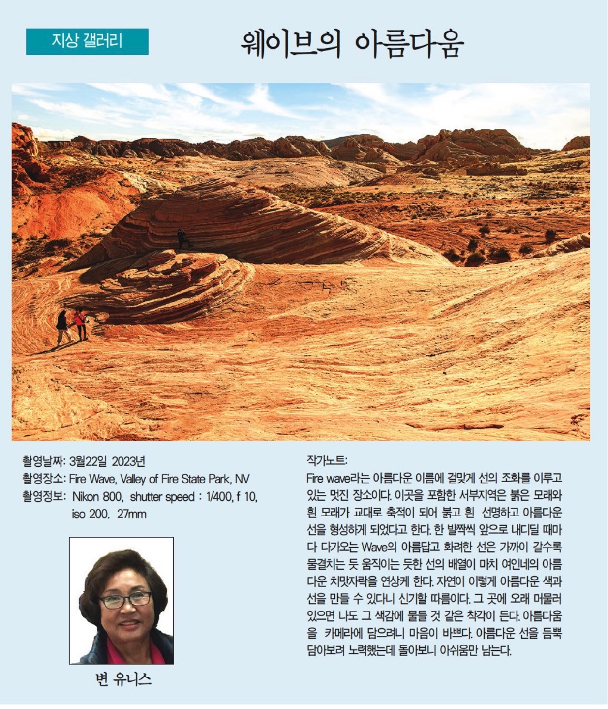 | 13 | 웨이브의 아름다움. 유니스 변. 5월 4일 2023년. 한국일보 | 9/22/2023 |