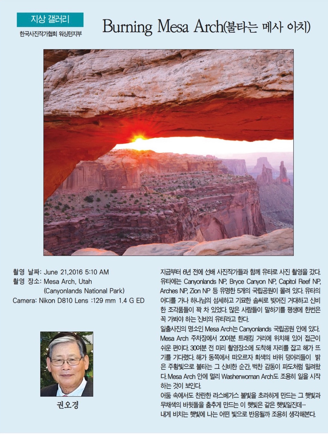 Burning Mesa Arch(불타는 메사 아치). 권오경. 7월 27일 2023년. 한국일보9/23/2023 By e4d56301-3902-4b82-9776-b75b91be4626 |