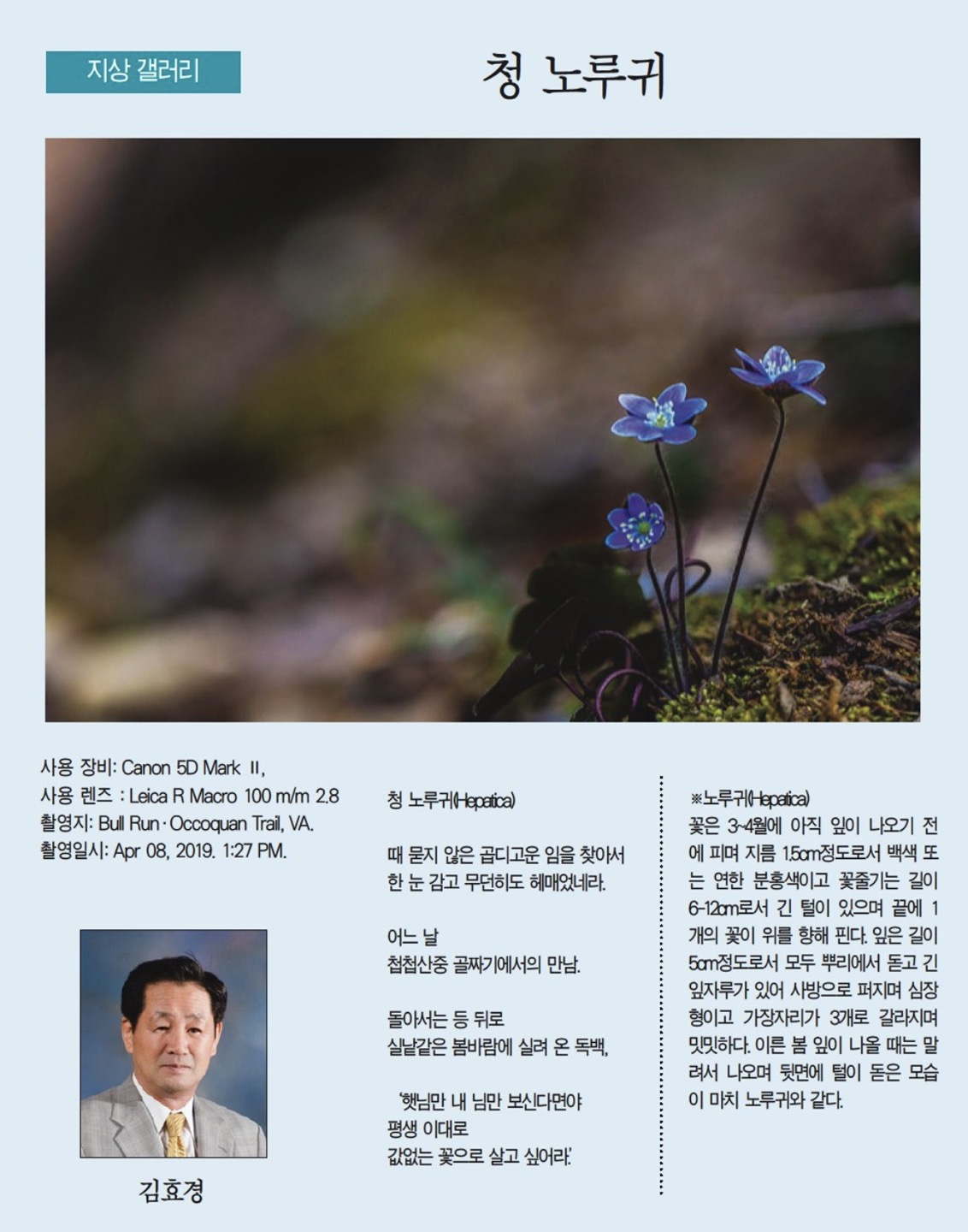 | 15 | 청 노루귀. 김효경 . 4월 20일 2023년 한국일보 지상 갤러리 | 9/21/2023 |